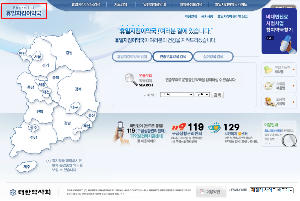 휴일지킴이 약국 홈페이지 바로가기