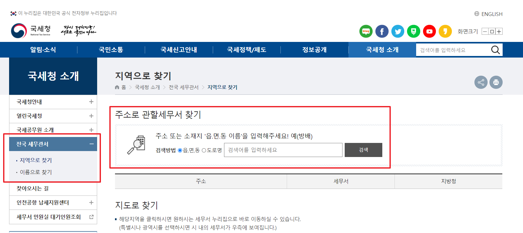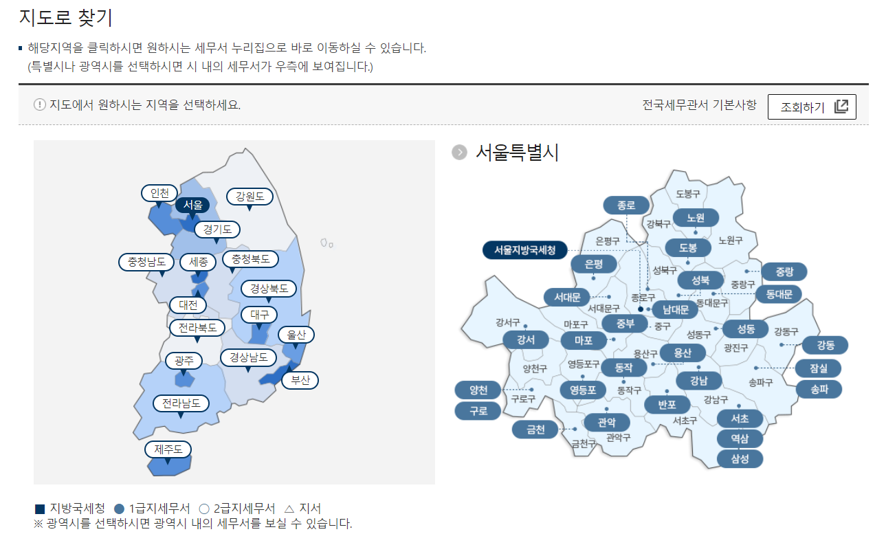 3. 원하는 세무서는 작성하여 클릭합니다.