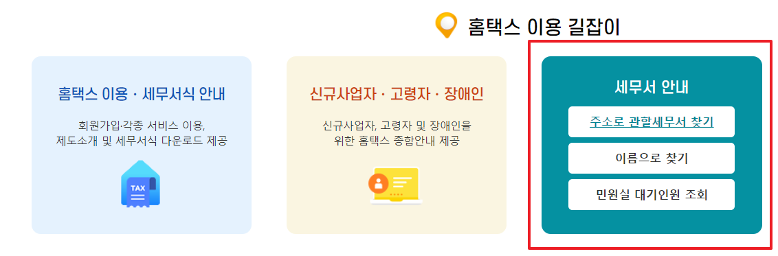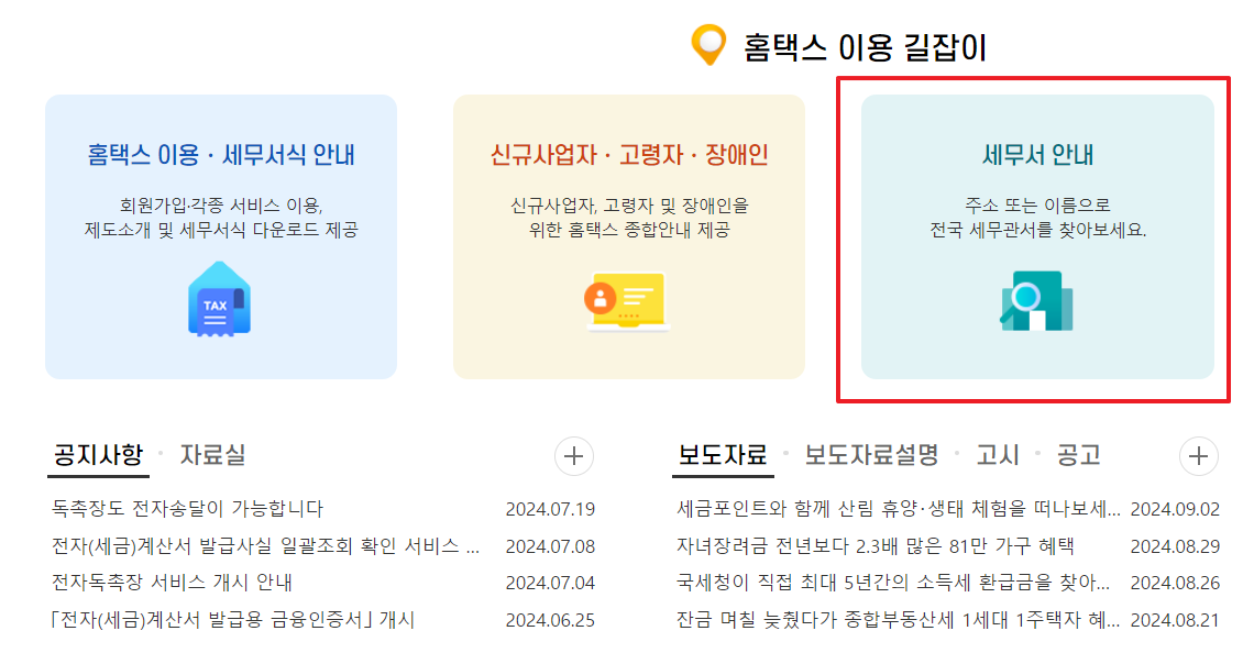 1. 홈택스 메인 화면 하단에 세무서 안내 클릭합니다.