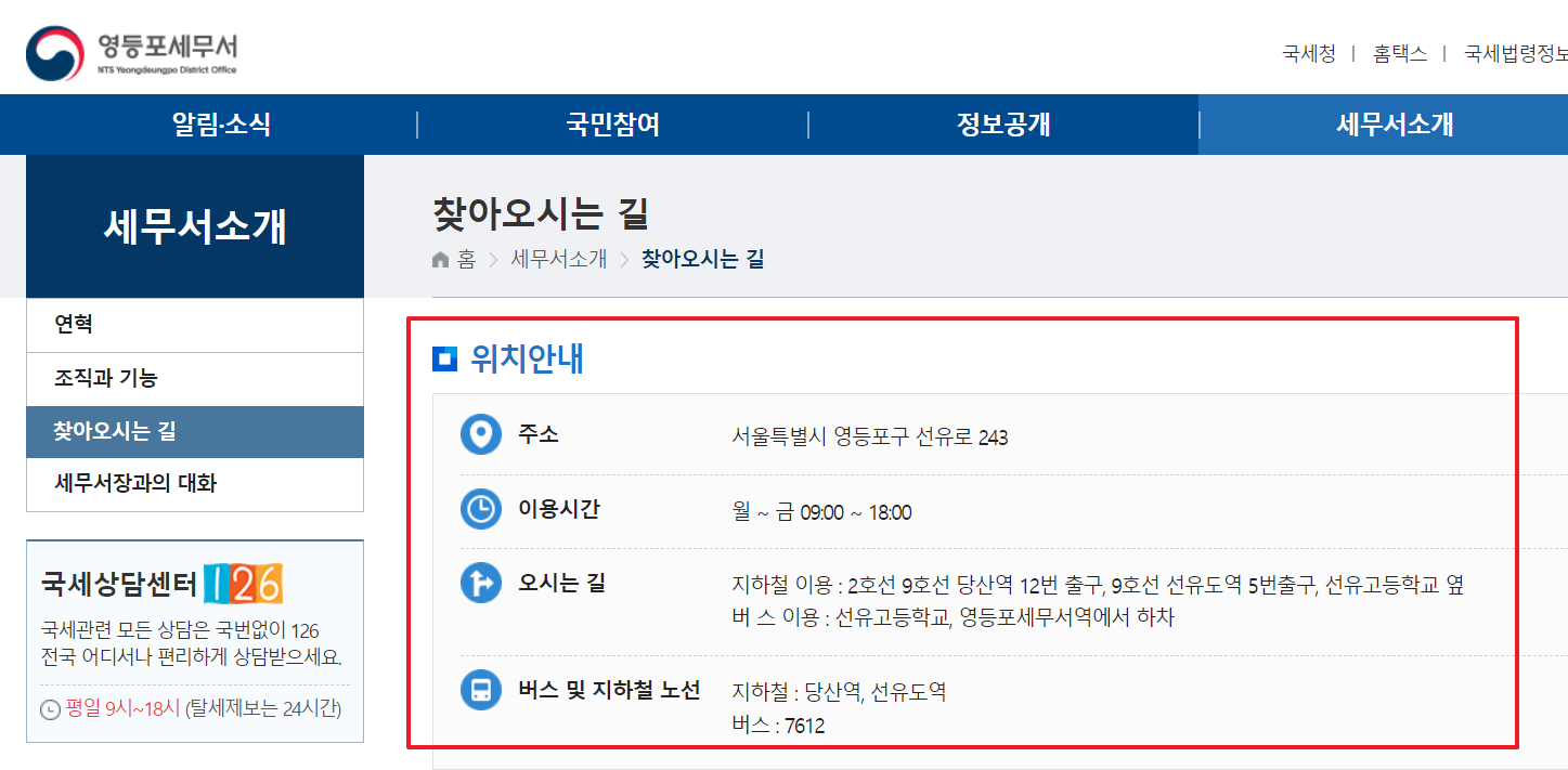 - 전화번호: 해당 세무서의 전화번호가 제공됩니다. 이 번호로 연락하여 추가적인 문의를 하거나 예약을 할 수 있습니다.