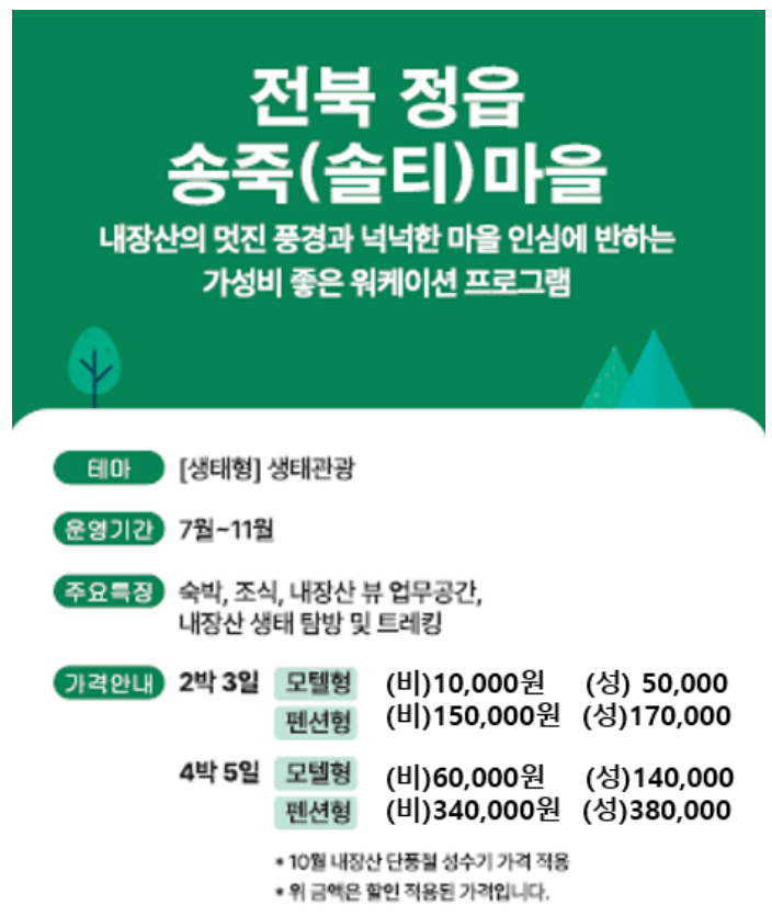 - 가격: 2박 3일 120,000원 / 4박 5일 290,000원