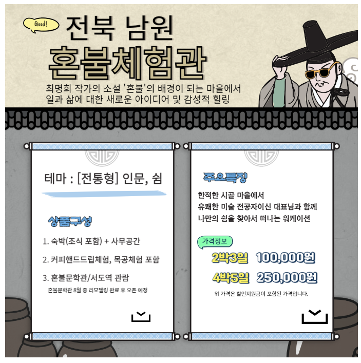 - 가격: 2박 3일 100,000원 / 4박 5일 250,000원