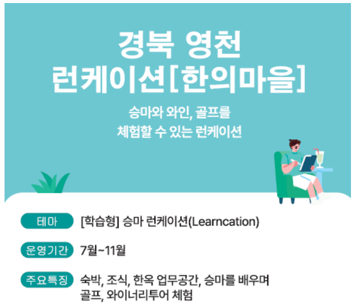 - 가격: 2박 3일 140,000원(승마, 와인) / 4박 5일 580,000원(승마, 골프)