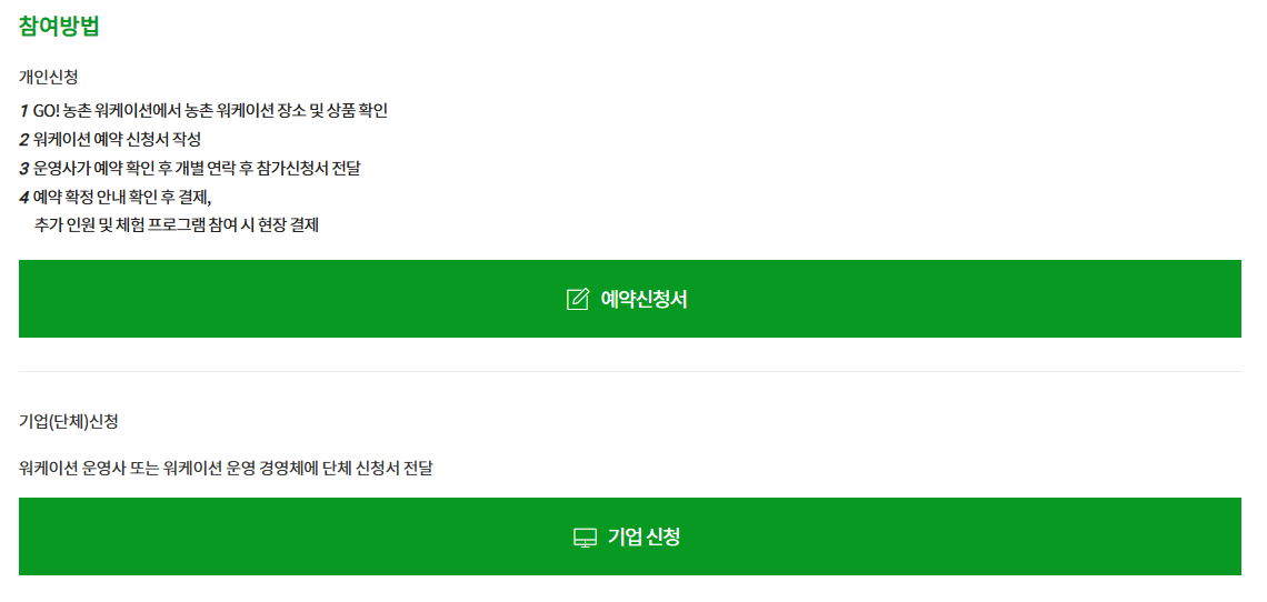 기업이나 단체는 별도의 단체 참여 신청서를 작성한 후, 참여자 명단을 운영사에 전달해야 합니다. 이후 운영사의 예약 현황을 확인한 뒤 결제와 함께 예약이 확정됩니다.