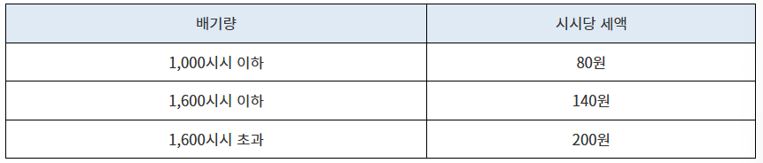 - 배기량이 클수록 높은 세율이 적용됩니다.