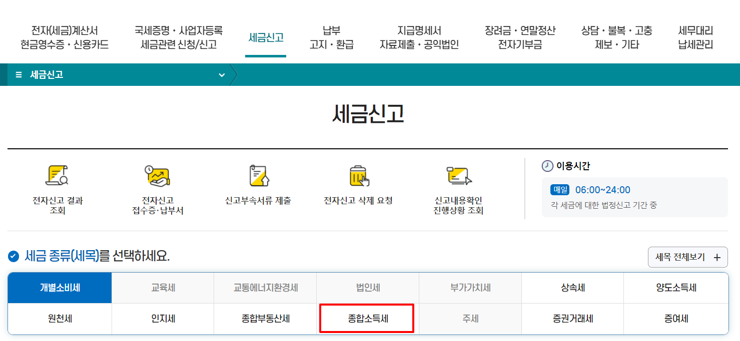 로그인 - 조회 발급 메뉴 - 세금 신고 납부