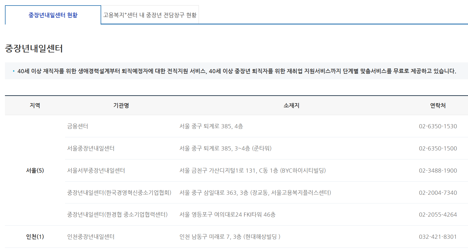 전직 및 재취업 지원, 특화 서비스 등의 중장년층에 특화된 종합 고용 서비스를 무료로 제공하고 왔습니다.