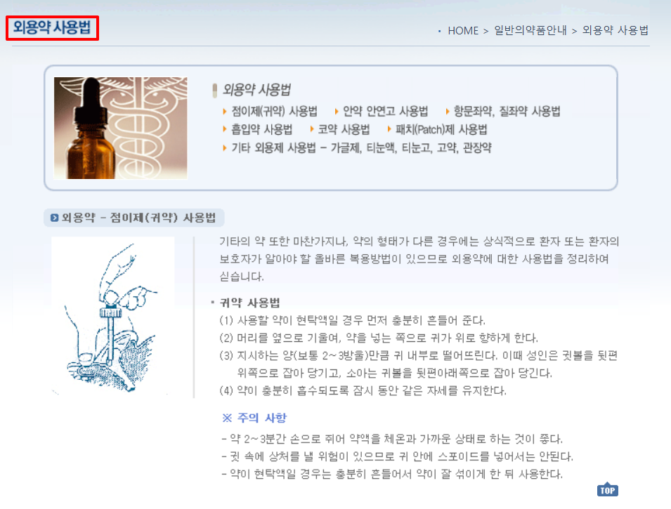 외용약 사용 방법을 알 수 있는 메뉴입니다.