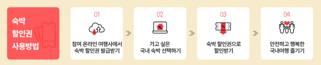 - 사용방법: 참여 온라인 여행사를 통한 숙박 할이누건 발급 및 사용 (1인 1매 사용가능 선착순)