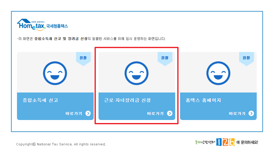 1. 국세청 홈택스 홈페이지 - 근로, 자녀장려금 신청